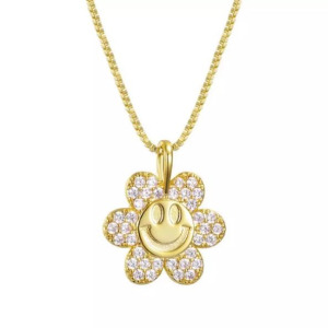 Collar Moda Carita Feliz con diseño de Flor, chapado en Oro, Acero Inoxidable