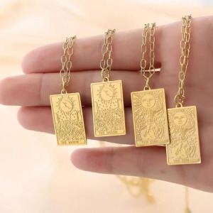 Moda Cartas del Tarot Acero Inoxidable chapado en Oro Collar Colgante