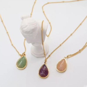 Moda Gotas embutidas en Piedra, Collar chapado en Oro, Acero Inoxidable