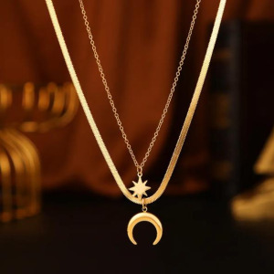 Juego de Collares Chapados en Oro, colgantes con sol y luna acero inoxidable