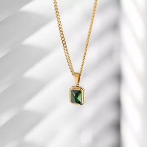 Collar diseño Simple colgante cuadrado embutido en pedreria, Acero Inoxidable, chapado en Oro