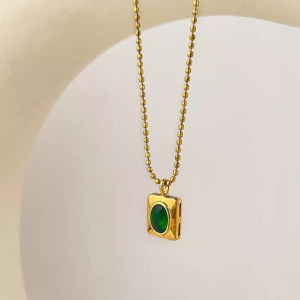 Collar diseño Geometrico colgante cuadrado embutido en pedreria, Acero Inoxidable, chapado en Oro