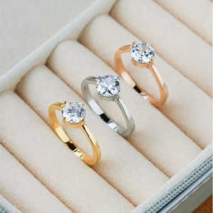 Anillo dama con diamante, Acero Inoxidable, chapado en oro 14k