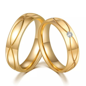 Anillo de matrimonio, compromiso, en acero inoxidable, chapado en oro 18k