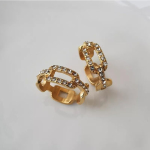 Juego de anillos chapado en oro 14k de mujer, en acero inoxidable estilo Cartier