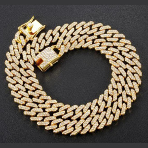 Cadena Hip Hop para Hombres de cadena de eslabones cubanos acabado en dorado de diamantes de imitación