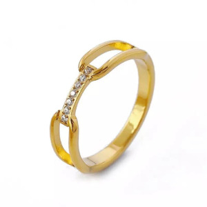 Anillos, estilo simple, geometricos, con pedreria, en acero inoxidable, chapado en oro.