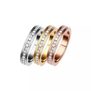 Anillos, estilo simple, geometricos, con pedreria, en acero inoxidable, chapado en oro.
