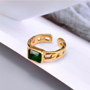 Moda 18K chapado en Oro Medio Círculo Rectangular Circón Anillo de Acero Inoxidable