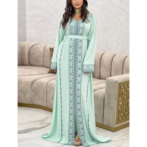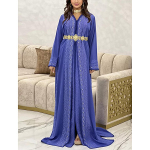 Vestido caftán estilo árabe azul con cinturón para mujer Abaya de Dubái moda colorida