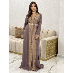 Vestidos Maxi violeta bordado para mujer musulmana árabe