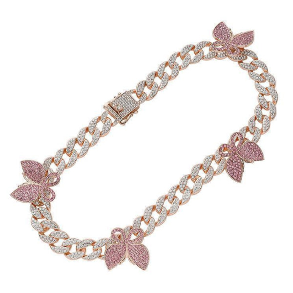 Tipo producto Joyería Tipo Joya Cadena Composición Aleación y Pedrería Parilti SKU ps-cad009 Cadena Hip Hop Mariposa Rosada Aleación Embutido Diamantes de Imitación Solicito presupuesto