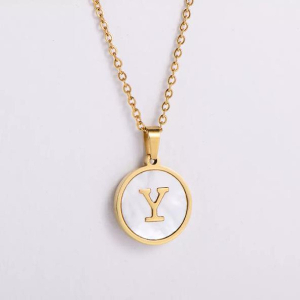 Tipo producto Joyería Tipo Joya Collar Composición Acero Inoxidable Parilti SKU ps-coll234 Collar Colgante de Acero de Titanio de 26 Letras Concha Redonda de Acero Inoxidable de Moda Solicito presupuesto