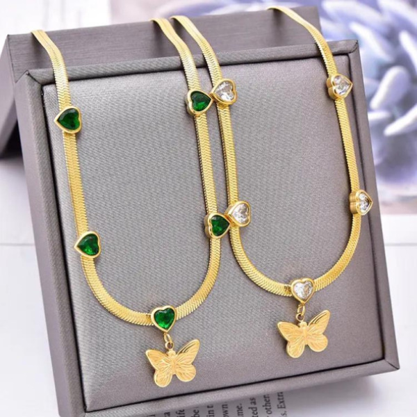 Tipo producto Joyería Tipo Joya Collar Composición Acero Inoxidable Parilti SKU ps-coll012 Collares Retro Forma de Corazón Mariposa Acero Inoxidable embutido Diamantes de Imitación Solicito presupuesto