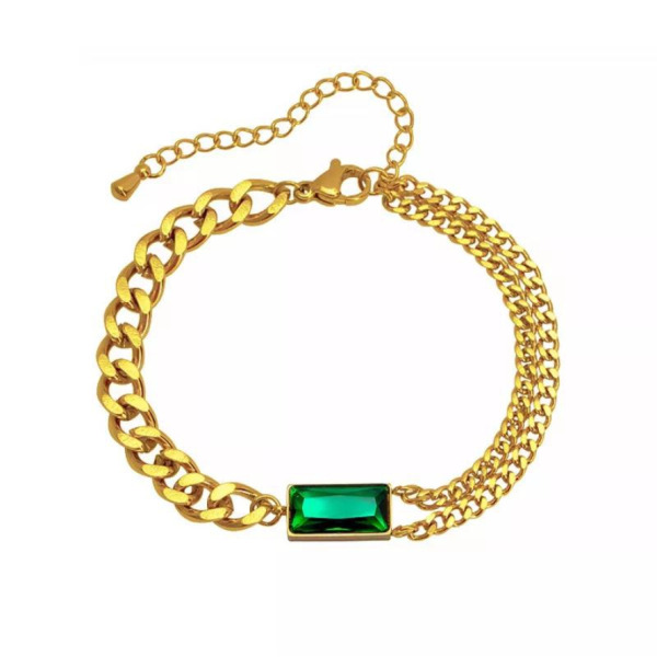 Tipo producto Joyería Tipo Joya Brazalete Composición Acero Inoxidable Parilti SKU ps-bra050 Estilo Simple Diario Brillante Rectángulo Acero Inoxidable chapado en Oro embutido Circón verde Solicito presupuesto