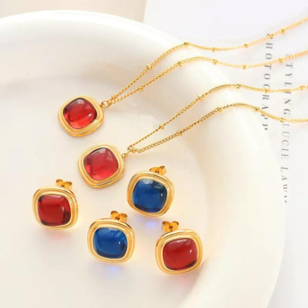 Tipo producto Joyería Tipo Joya Set de joyas Composición Aleacion Parilti SKU ps-jset018 Juego de Collar y Pendientes diseño Elegante Cuadrado Acero Inoxidable embutido Pedreria chapado en Oro Solicito presupuesto