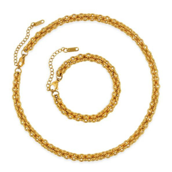 Tipo producto Joyería Tipo Joya Collar Composición Acero Inoxidable Parilti SKU ps-coll007 Juego de Collar y Pulsera diseño Bohemio Simple chapado en Oro Acero Inoxidable Solicito presupuesto