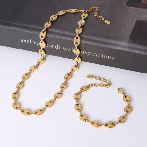 Tipo producto Joyería Tipo Joya Set de joyas Composición Acero Inoxidable Parilti SKU ps-jset036 Juego de Collar y Pulsera estilo Retro en Acero Inoxidable chapado en Oro Solicito presupuesto