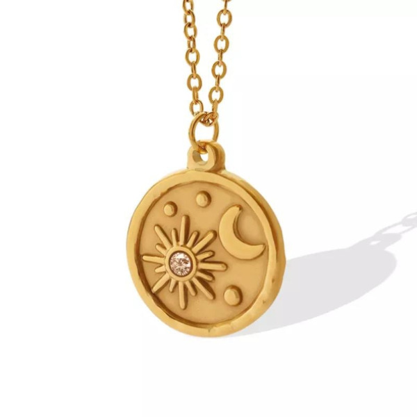 Tipo producto Joyería Tipo Joya Collar Composición Acero Inoxidable Parilti SKU ps-coll188 Moda Mistica, Collar con Colgante Luna y Sol forma Oval, Acero Inoxidable Solicito presupuesto