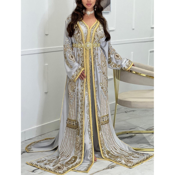 Tipo producto Ropa de Vestir Categoría Ropa de Vestir Vestidos Summer ONE SKU ps-mujarab008 Caftán marroquí blanco y dorado Splendorous de Dubái Abaya con cinturon S -M-L-XL-XXL Solicito presupuesto