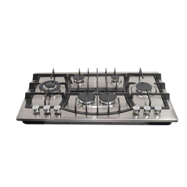 Estufa de gas en acero inoxidable con 5 hornillas, construida con materiales de primera calidad.