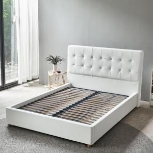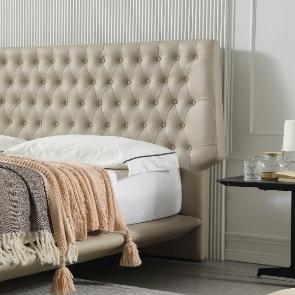 MP3632ZT | Cama color crema de cuero genuino con una cabecera acolchada