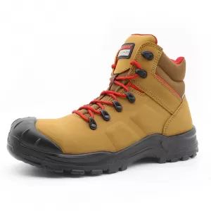 0132 - Zapatos de botas de seguridad de trabajo de cuero nobuk amarillo