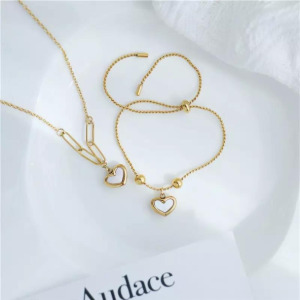 Juego de Collar y Pulsera Dulce Forma de Corazón Acero Titanio chapado en Oro