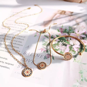 Juego de Collar y Pendientes estilo Simple Flor Acero Inoxidable Chapado en Oro 18k