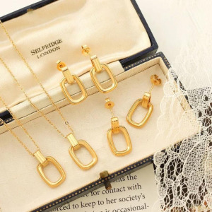 Juego de Collar y Pendientes en Acero de Titanio con Colgante Rectangular Hueco Geométrico de Moda