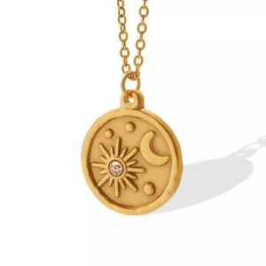 Moda Mistica, Collar con Colgante Luna y Sol forma Oval, Acero Inoxidable