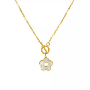 Collar Moda Carita Feliz con diseño de Flor, chapado en Oro, Acero Inoxidable