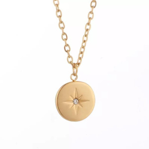 Diseño Medalla con Estrella embutida en circon, Collar chapado en Oro
