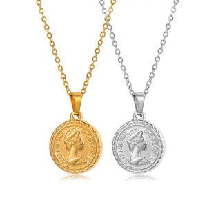 Juego de Collares dobles con Colgante diseño de Moneda chapado en Oro Acero Inoxidable