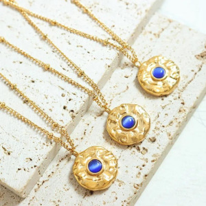 Collar diseño Retro Chapado en Oro con colgante redondo embutido con zafiro imitacion