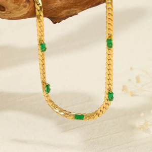 Collar, Cadena de Clavícula Doble, Acero Inoxidable con Colgante Candado embutido con pedreria verde chapado en Oro