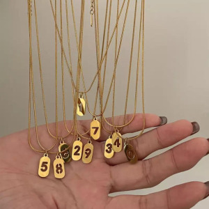 Collares diseño simple con colgantes con nùmeros, chapado en Oro, Acero Inoxidable
