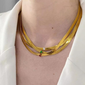 Collar Elegante, de tres vueltas, chapado en oro, embutido con circon, Acero Inoxidable