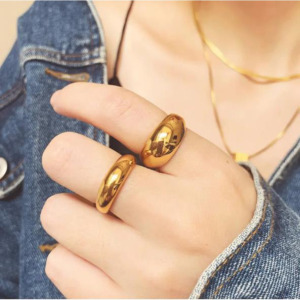 Anillo moderno, de acero inoxidable, chapado en oro 18k