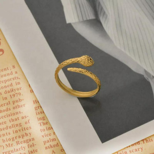 Anillo Abierto Moda Serpiente Acero Inoxidable chapado en oro