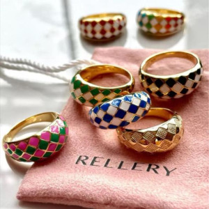 Anillos Retro Geométrico Tartán Acero Inoxidable