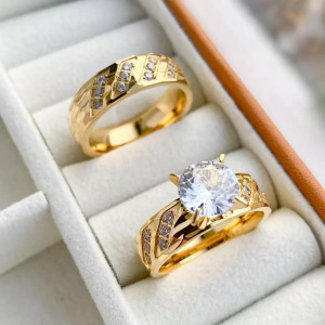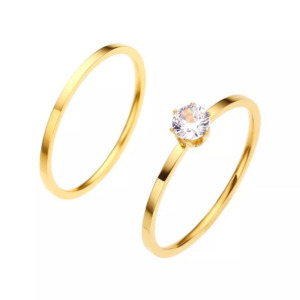 Anillo Solitario, doble acero inoxidable de compromiso, chapado en oro 18k