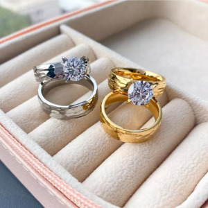 Juego de anillos chapado en oro 14k de mujer, en acero inoxidable estilo Cartier