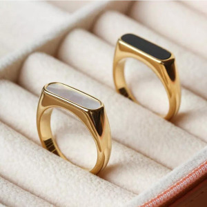 Anillo Estilo Clasico Geometrico, en acero inoxidable, chapado en oro 18k