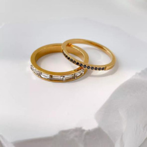 Set de anillos para dama, diseño sencillo, chapado en oro 14k, acero inoxidable