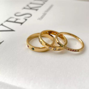 Anillo delgado Estilo Retro Geometrico con pedreria de colores