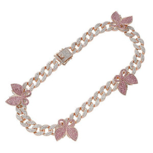 Cadena Hip Hop Mariposa Rosada Aleación Embutido Diamantes de Imitación