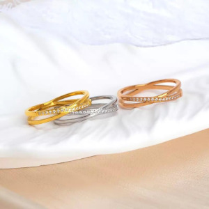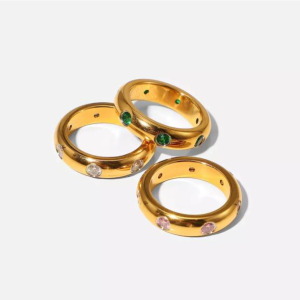 Anillos, estilo simple, geometricos, con pedreria, en acero inoxidable, chapado en oro.