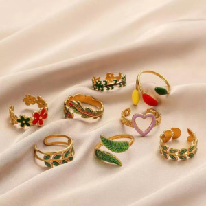 Anillos Elegantes Oval, hojas, flores, corazon, en Acero Inoxidable, Chapado en Oro 18k, acero inoxidable