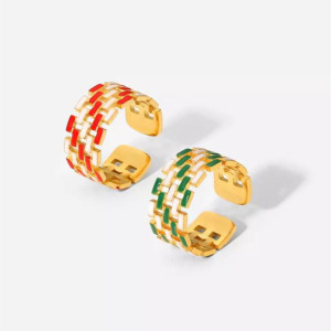 Anillos Lujosos Bloque de Color Acero Inoxidable chapado en oro